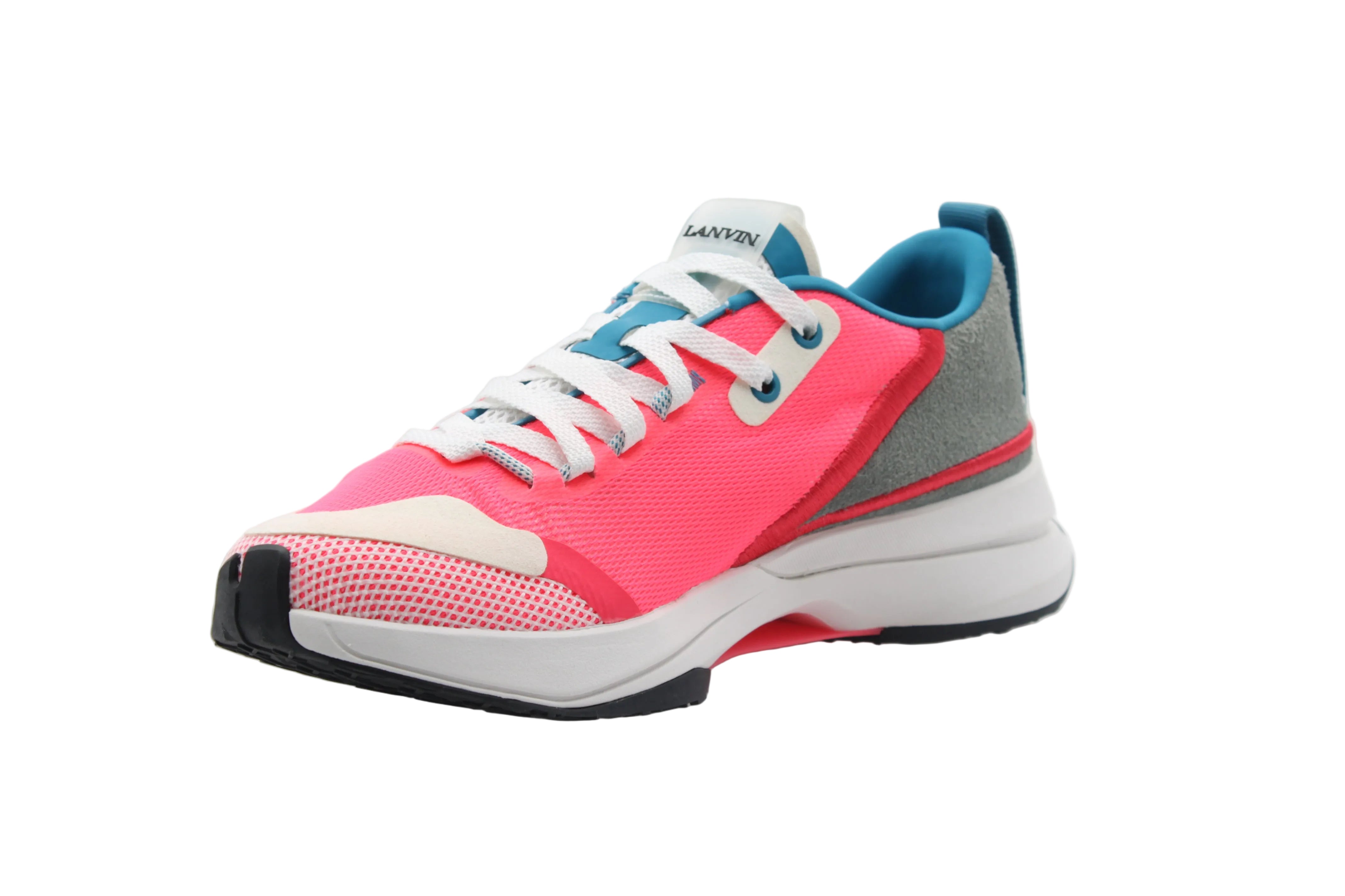 Le nom LANVIN apposé sur le côté signe le modèle avec discrétion, apportant une touche élégante sans surcharge visuelle. Les nuances de rose contrastent subtilement avec le blanc optique, créant un design frais, énergique et parfaitement dans l’air du temps.