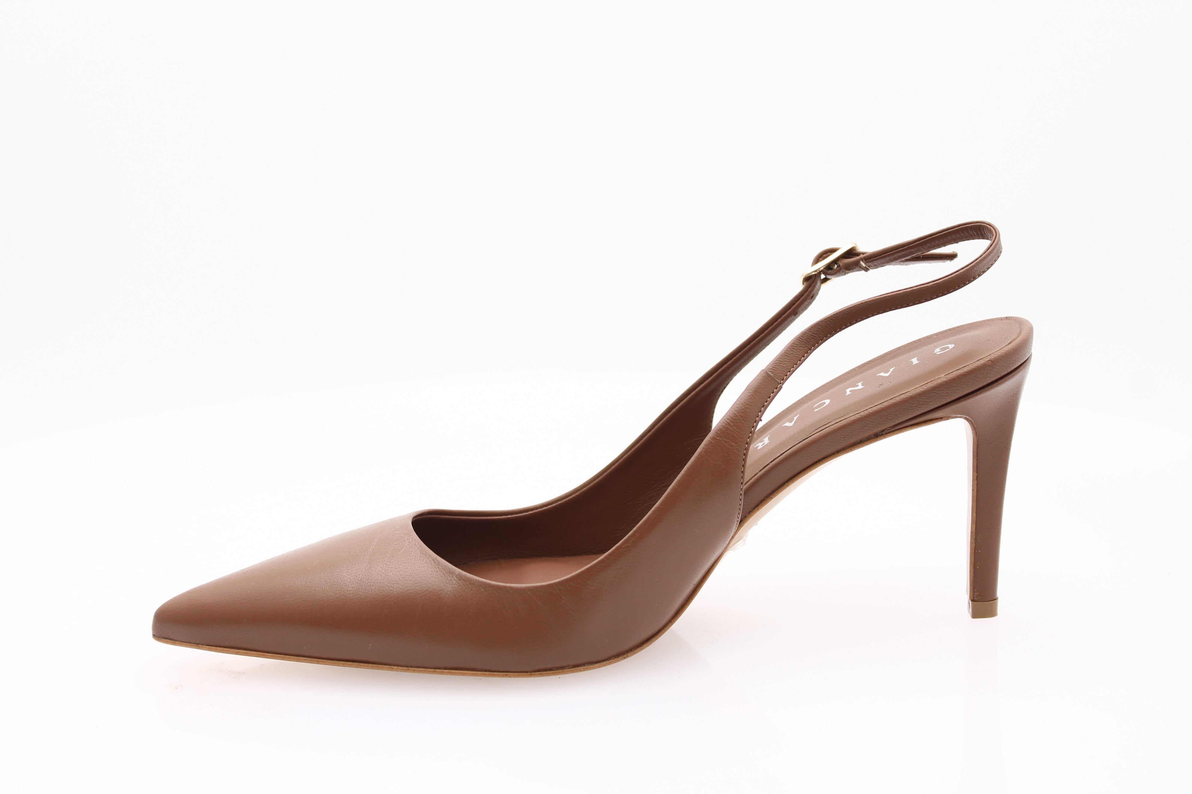 De GIANCARLO is een elegante leren pump met een hak van 8 cm en een bandje aan de achterkant voor een perfecte pasvorm.