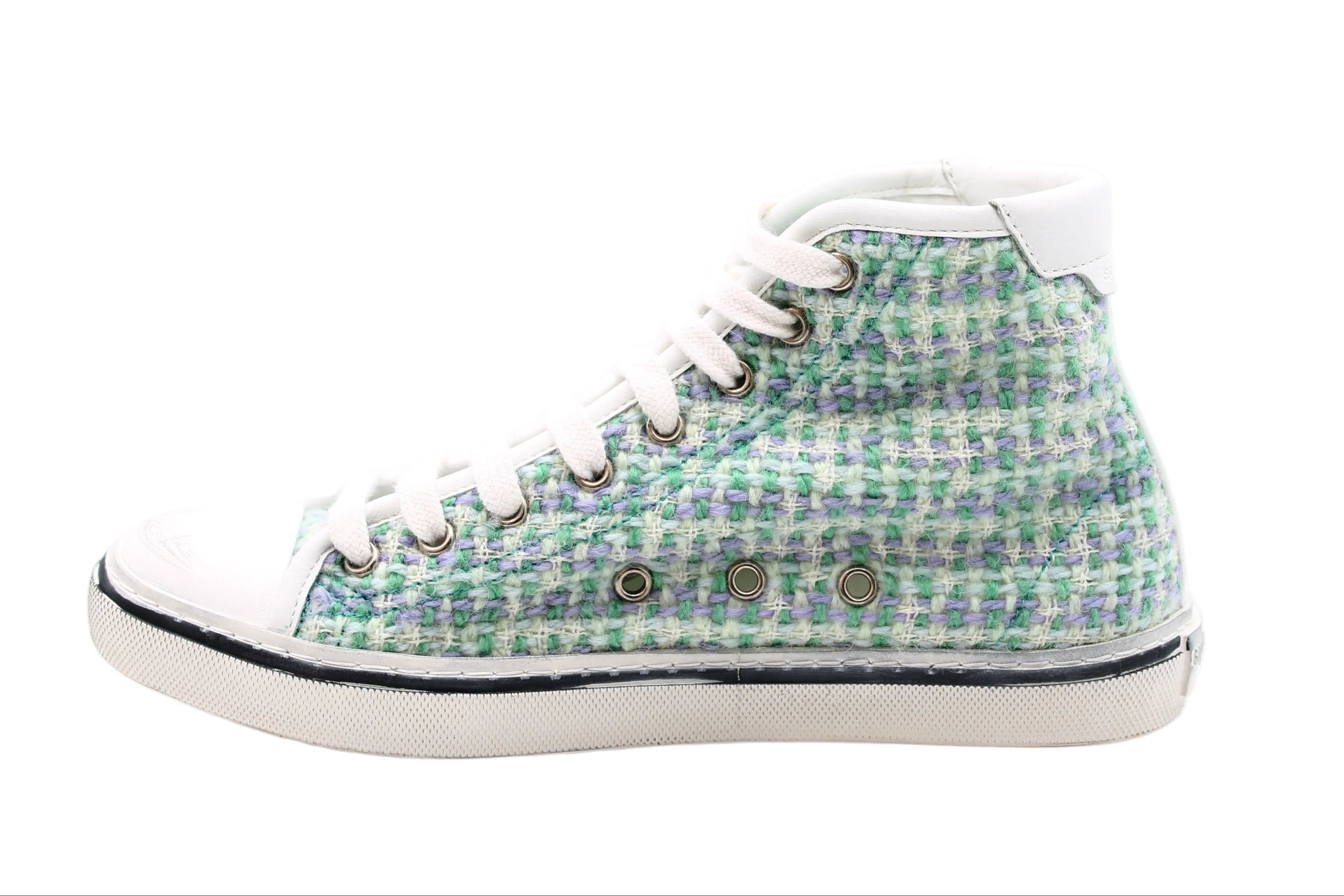 Ontdek deze gloednieuwe lila sneakers, verfraaid met subtiele groene en paarse accenten, die luxe combineren met een aantrekkelijke prijs. Ze bieden een uitstekende prijs-kwaliteitverhouding en zijn de ideale mode-investering voor wie zichzelf wil trakteren op een hoogwaardig product zonder compromissen.