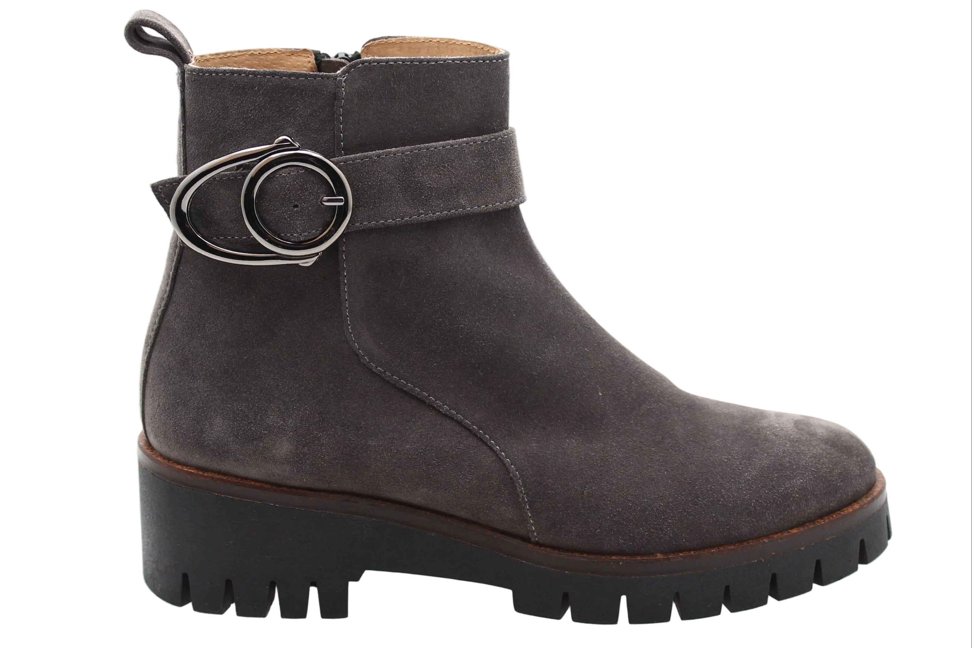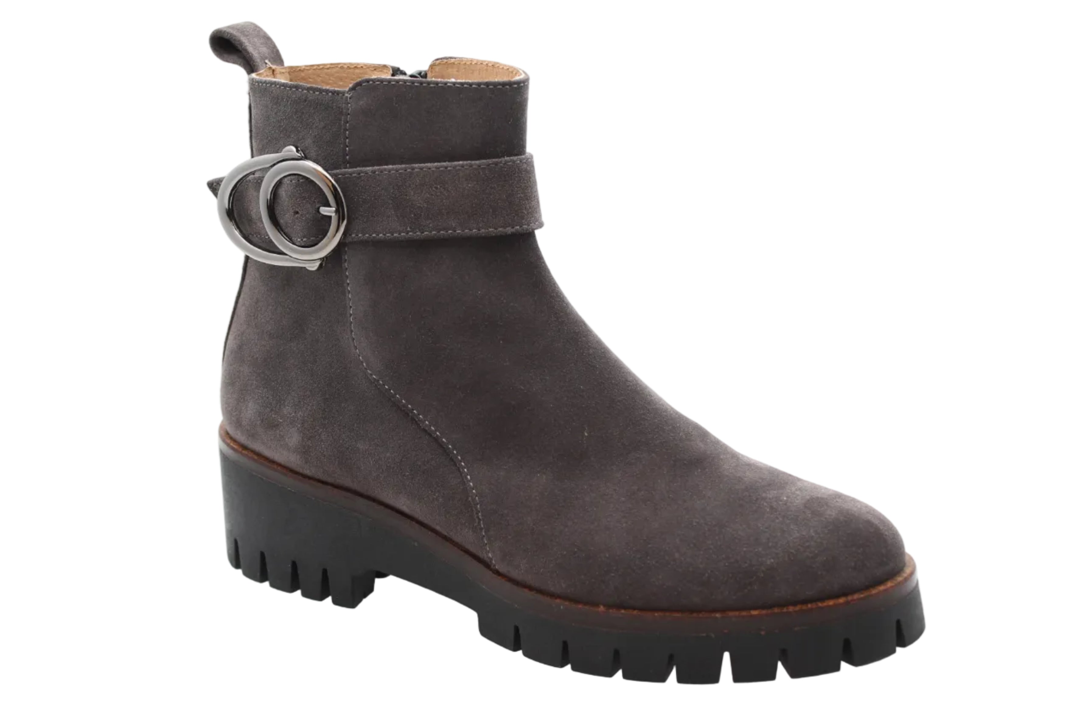 Découvrez la bottine en cuir suède EXIT AND CO - Kivalita en gris foncé.
