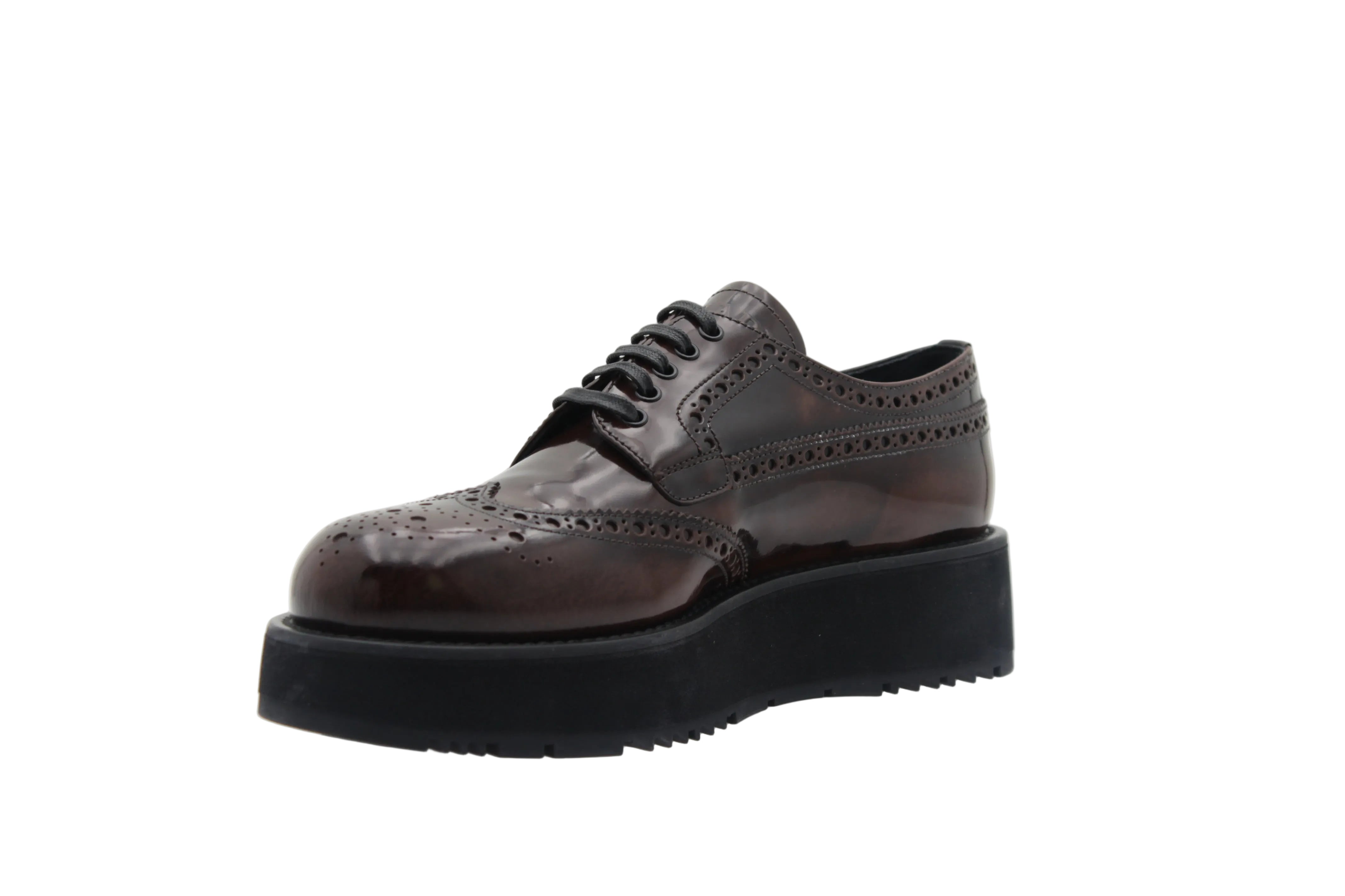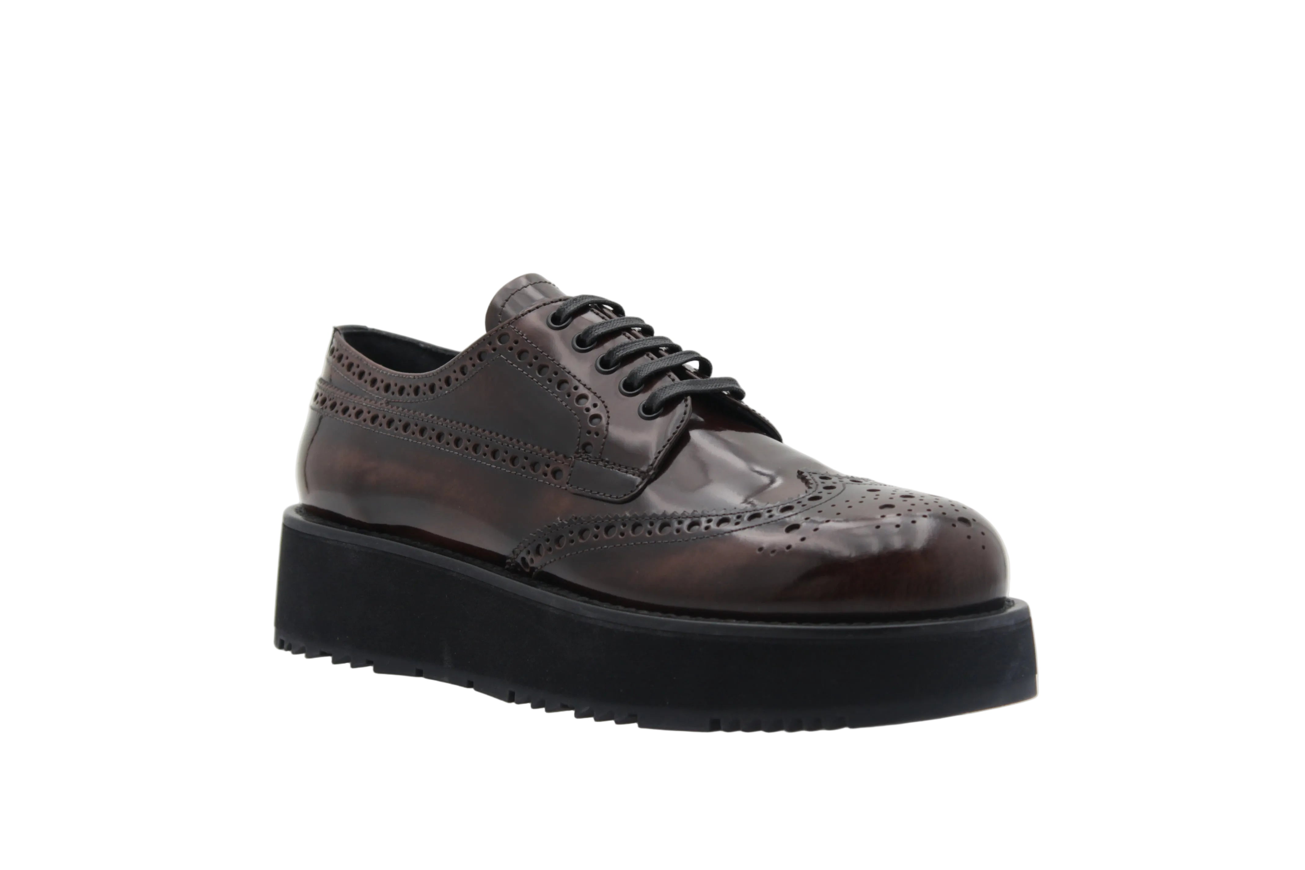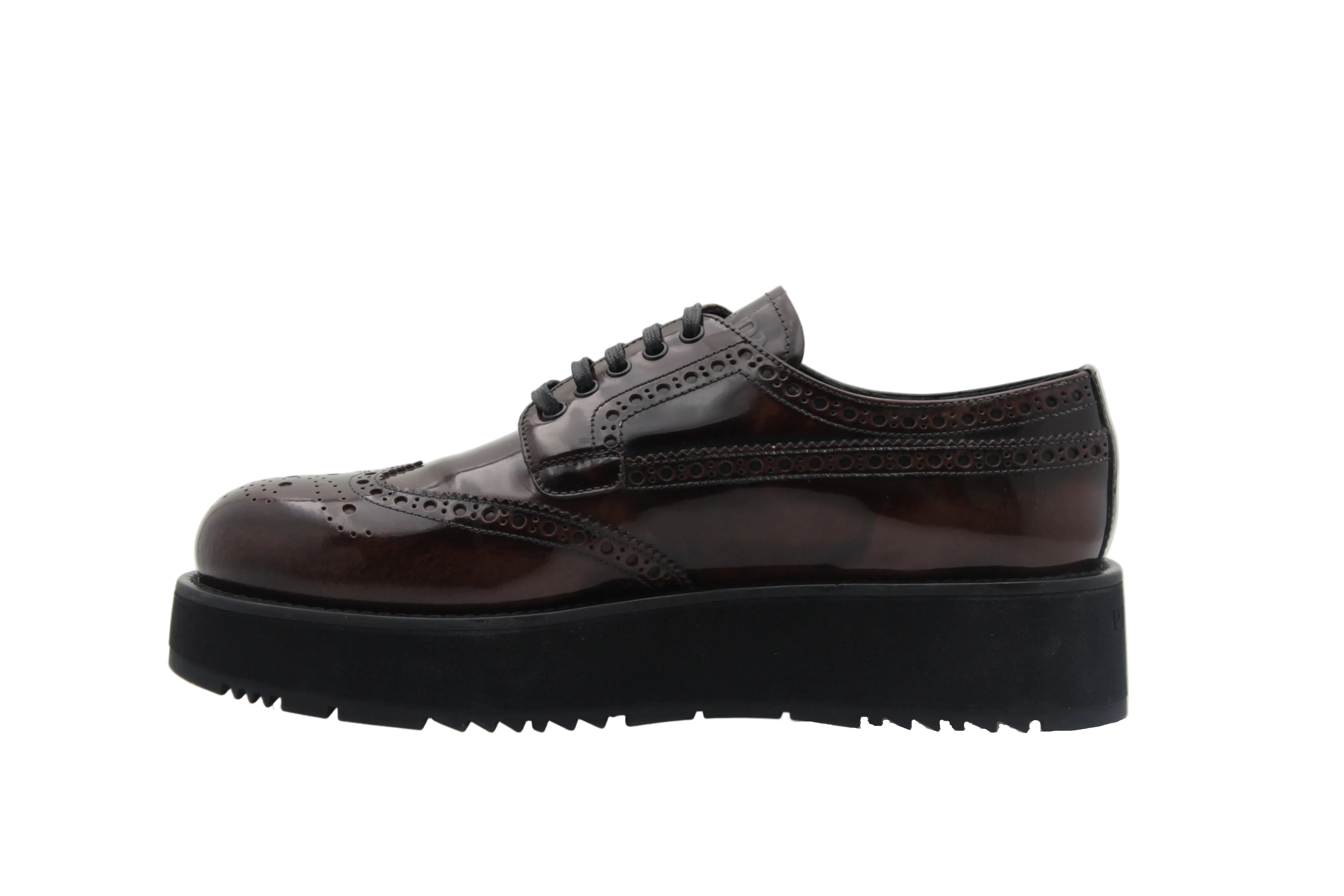 Au-delà de son esthétique, le Derby Brogue Prada bordeaux offre un excellent confort au quotidien. La plateforme crantée assure une bonne stabilité et un amorti agréable, tout en allongeant visuellement la silhouette.